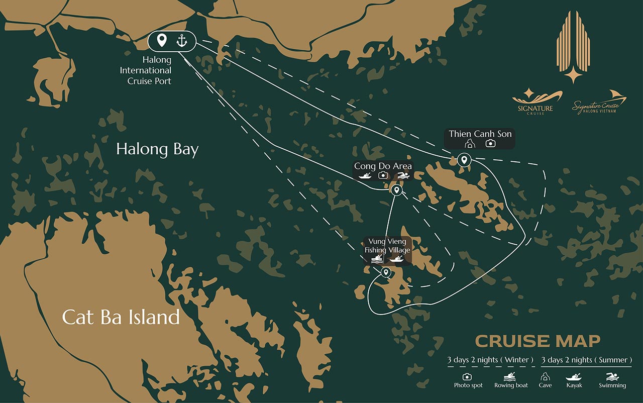 12:00 Check-in: Warmly welcomed by Signature Team in Halong International Harbour. Complete the luggage check-in procedure at the waiting lounge before boarding for the cruise.